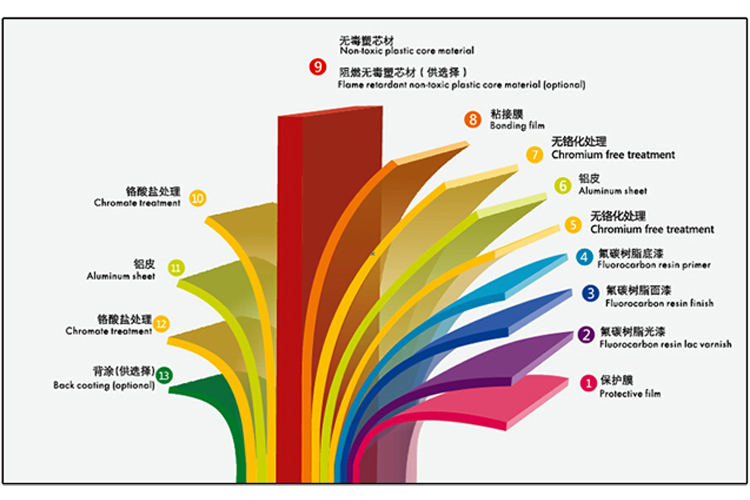 5、按照鋁塑復(fù)合板國家標(biāo)準(zhǔn) GB/T17748-1999生產(chǎn)的氟碳外墻板,涂層采用70%的氟碳樹脂,在正常氣候環(huán)境條